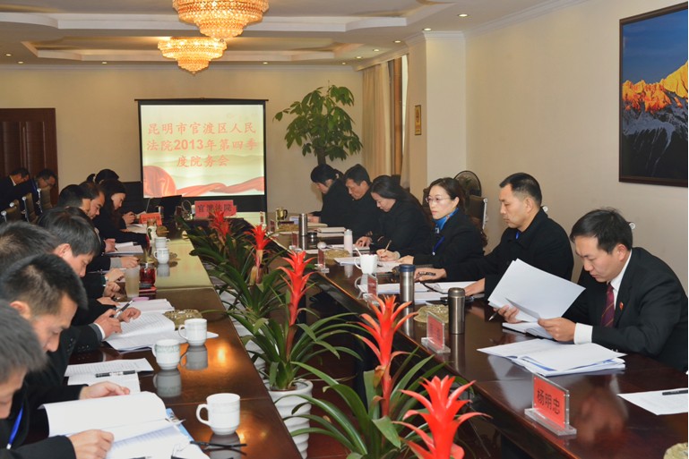 2014年1月7日,官渡法院召开2013年度第四季度院务会,传达学习区委全会会议精神,同时对2014年重点工作作了安排和部署。