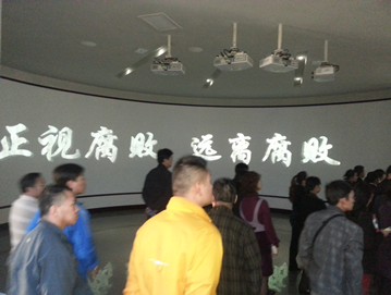 在教育基地工作人员的引领下,大家认真观看了案例展厅、反腐倡廉成果厅、灯塔厅内展示的近年来中央及省纪检部门查办的一批大案要案、部分典型人物勤政廉政事迹、中