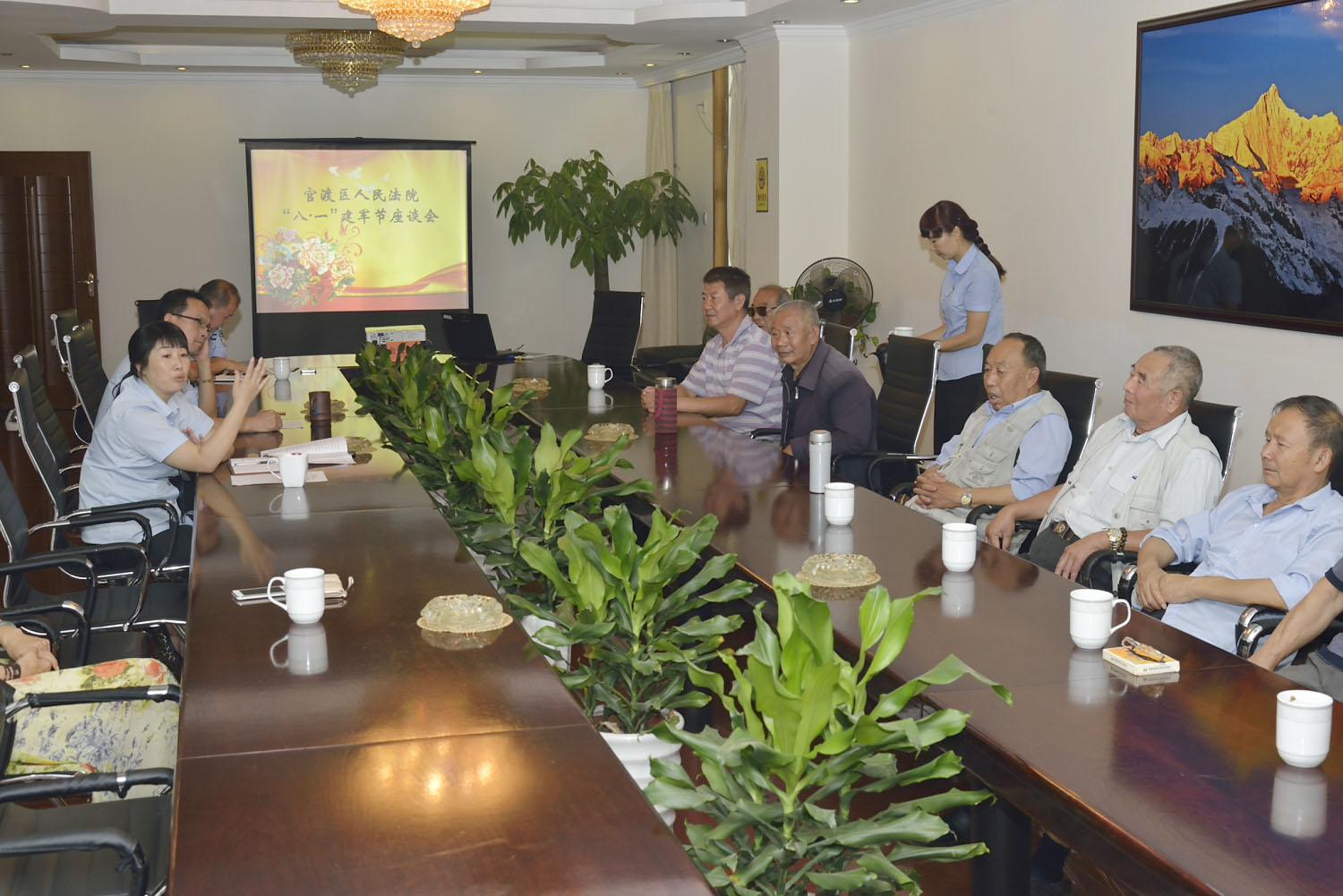 2014年7月23日,在中国人民解放军建军八十七周年即将来临之际,官渡区法院召开了复转军人、军属双拥座谈会。党组成员、政治处主任蔡红,政治处副主任赵刚代表院党组参加座谈会,与大家同庆建军佳节,共叙鱼水深情。