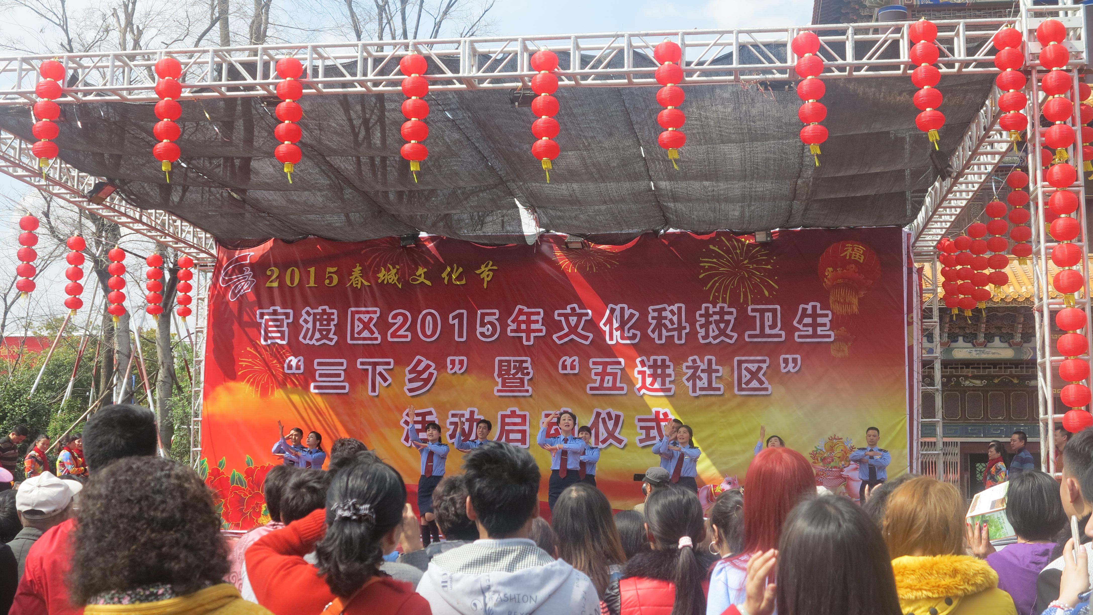 在新春佳节即将到来之际,为深入贯彻落实党的十八届三中、四中全会、学习好习近平总书记系列重要讲话精神,践行党的群众路线,促进社区经济社会持续发展,共青团官渡区委积极参加官渡区2015年文化科技卫生“三下乡”暨“五进社区”活动。